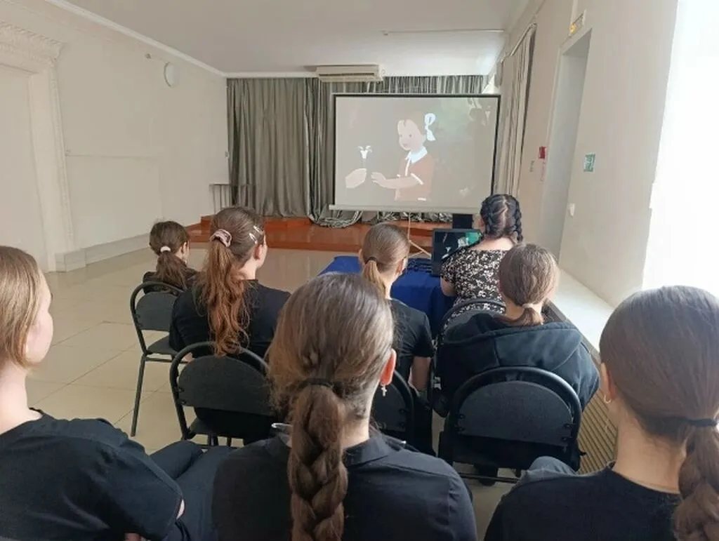 Ребята посмотрели классический мультфильм «Цветик-семицветик» — историю о девочке Жене и волшебном цветке, который научил ценить добрые поступки и помогать другим.