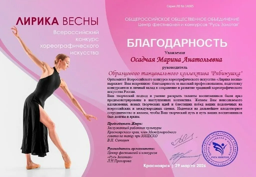 Победа во Всероссийском конкурсе хореографического искусства «Лирика весны»