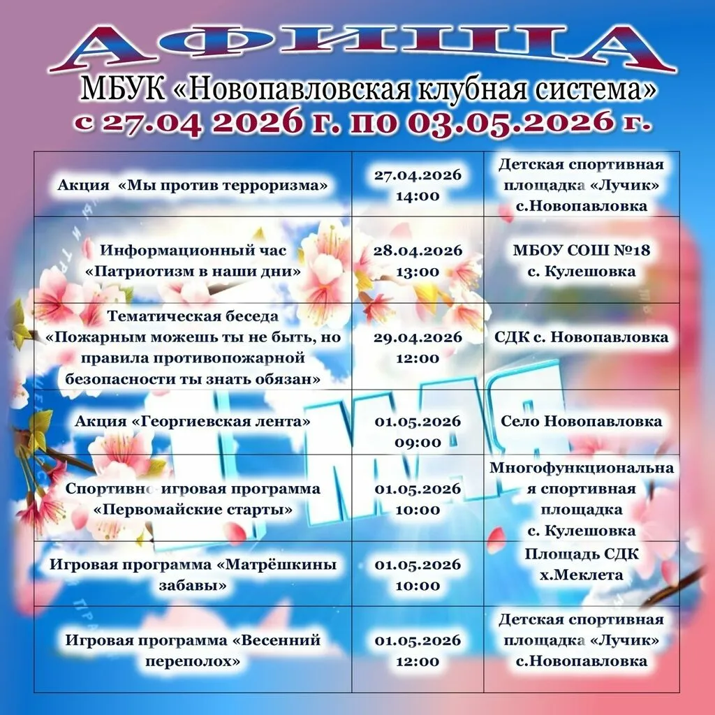 План работы с 27 апреля по 3 мая 2026 года
